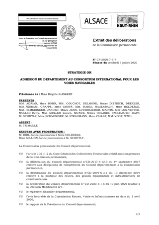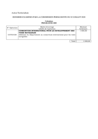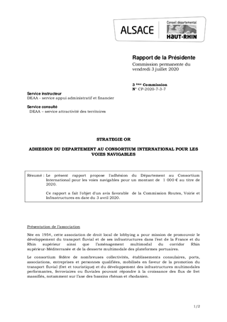 Le présent rapport propose l'adhésion du Département au Consortium International pour les voies navigables pour un montant de 1 000 € au titre de 2020. Ce rapport a fait l'objet d'un avis favorable de la Commission Routes, Voirie et Infrastructures en date du 3 avril 2020.