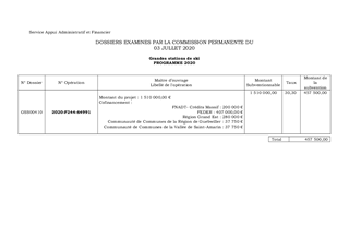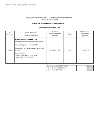 Il est proposé d’approuver la sixième programmation pour l’année 2020 des aides à attribuer à 3 projets dans le cadre du Fonds de Solidarité Territoriale (FST), pour un montant total de 16 980 €. Ce rapport a fait l’objet d’un avis favorable de la Commission Patrimoine Immobilier, Actions et Territoires réunie le 12 juin 2020.