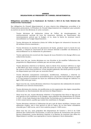Le présent rapport a pour objet de donner délégation au Président du Conseil départemental dans certains domaines.