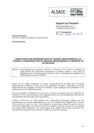 Conformément aux articles L 1424-24, L 1424-24-2 et R 1424-2 et suivants du Code général des collectivités territoriales, le présent rapport a pour objet la désignation des 14 représentants titulaires et des 14 représentants suppléants du Département au sein du CASDIS.