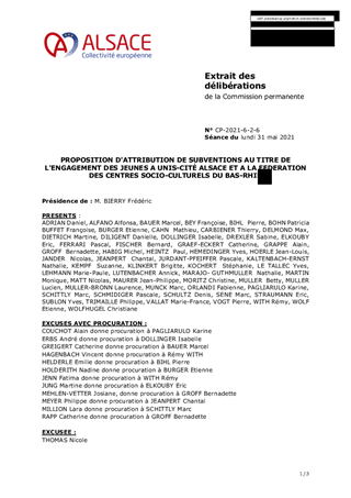 Le présent rapport a pour objet d'attribuer une subvention de fonctionnement à Unis-Cité Alsace et à la Fédération des Centres socio-culturels du Bas-Rhin pour l'organisation d'une journée inter-centres, pour un montant total de 103 000 €.