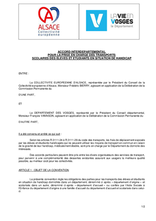 Ce rapport a pour objet de fixer les obligations respectives de la Collectivité européenne d’Alsace et du Département des Vosges pour les transports des élèves et étudiants en situation de handicap domiciliés dans un département et scolarisés dans l’autre.