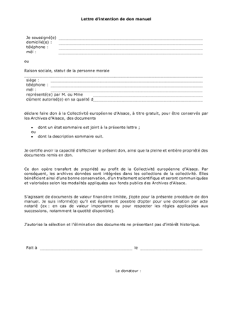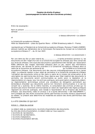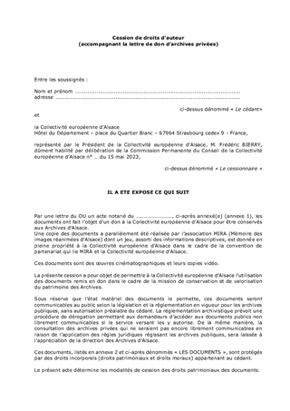 DONATION ET DEPOT D'ARCHIVES PRIVEESAU PROFIT DE LA COLLECTIVITE EUROPEENNE D'ALSACE