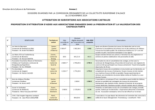 PROPOSITION D'ATTRIBUTION D'AIDES AUX ASSOCIATIONS DE BENEVOLES ENGAGEES DANS LA PRESERVATION ET LA VALORISATION DES CHATEAUX FORTS
