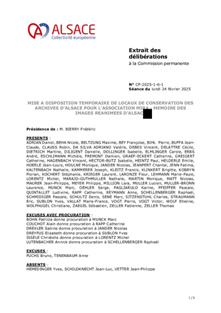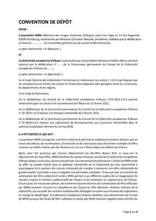 MISE A DISPOSITION TEMPORAIRE DE LOCAUX DE CONSERVATION DES ARCHIVES D'ALSACE POUR L'ASSOCIATION MIRA - MEMOIRE DES IMAGES REANIMEES D'ALSACE