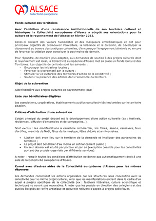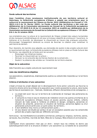 SUBVENTIONS AU TITRE DU FONDS CULTUREL DES TERRITOIRES