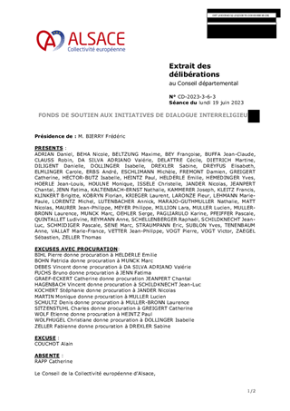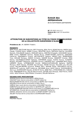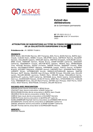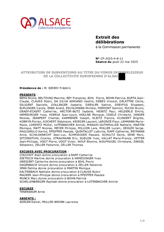 ATTRIBUTION DE SUBVENTIONS AU TITRE DU FONDS INTERRELIGIEUX DE LA COLLECTIVITE EUROPEENNE D'ALSACE