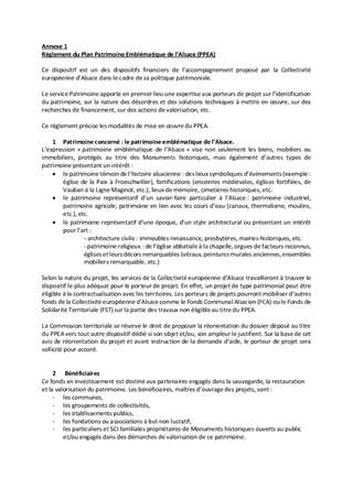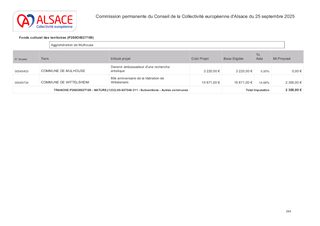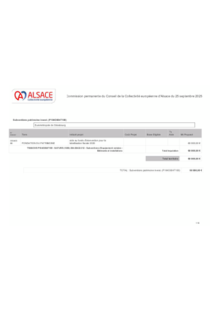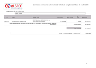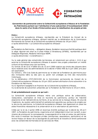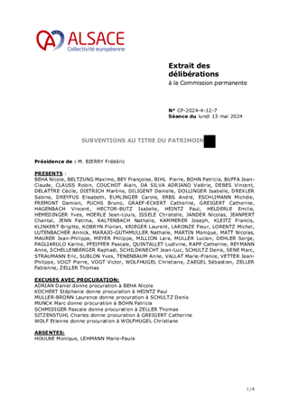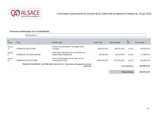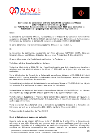 ACTIONS PATRIMONIALES DE LA COLLECTIVITE EUROPEENNE D'ALSACE