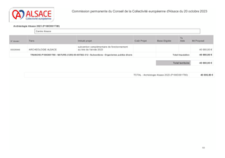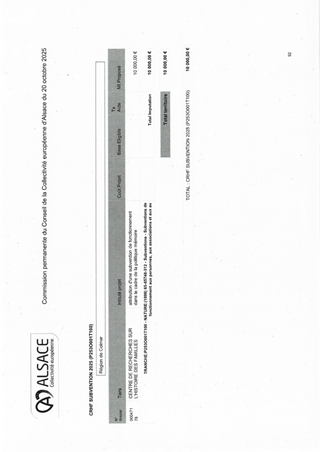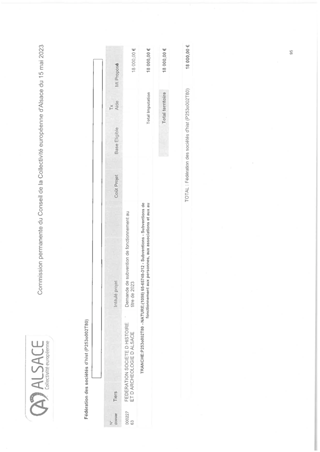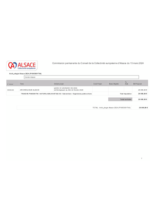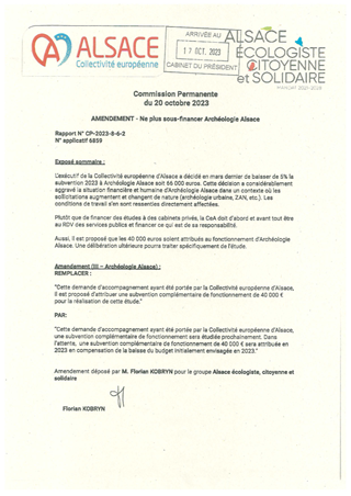 ACTIONS PATRIMONIALES DE LA COLLECTIVITE EUROPEENNE D'ALSACE ET SOUTIEN A ARCHEOLOGIE ALSACE