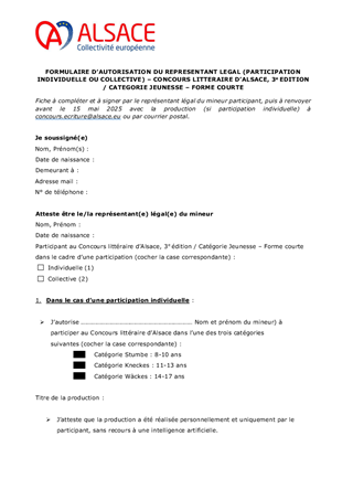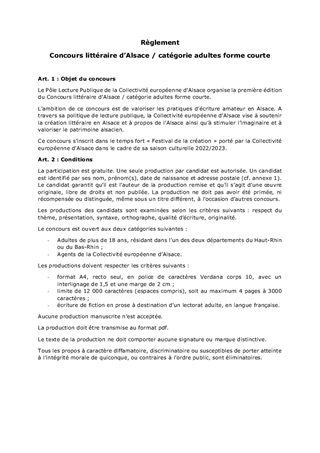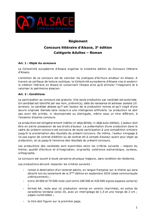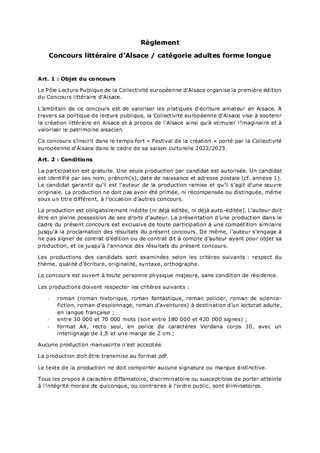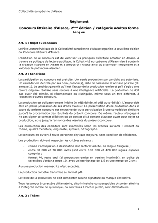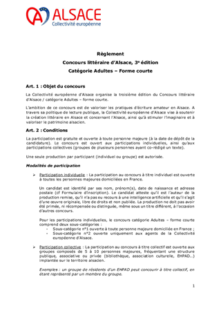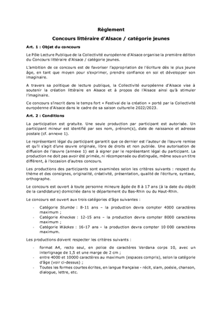 MODALITÉS ET RÈGLEMENTS DU CONCOURS LITTÉRAIRE D'ALSACE