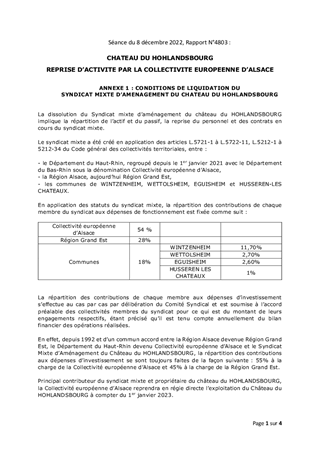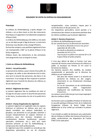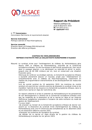 CHATEAU DU HOHLANDSBOURG REPRISE D'ACTIVITE PAR LA COLLECTIVITE EUROPEENNE D'ALSACE