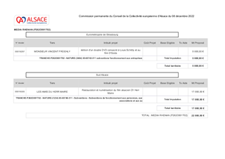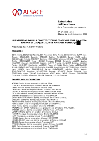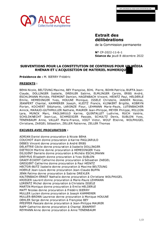 SUBVENTIONS POUR LA CONSTITUTION DE CONTENUS POUR UN MÉDIA RHÉNAN ET L'ACQUISITION DE MATERIEL NUMERIQUE