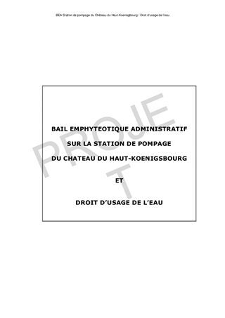BAIL EMPHYTEOTIQUE ADMINISTRATIF SUR LA STATION DE POMPAGE DU CHÂTEAU DU HAUT-KOENIGSBOURG ET DROIT D'USAGE DE L'EAU
