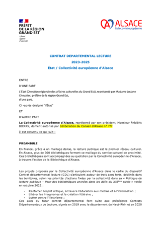 PROPOSITION D'APPROBATION D'UN CONTRAT DEPARTEMENTAL LECTURE