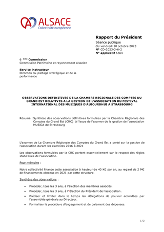 OBSERVATIONS DEFINITIVES DE LA CHAMBRE REGIONALE DES COMPTES DU GRAND EST RELATIVES A LA GESTION DE L'ASSOCIATION DU FESTIVAL INTERNATIONAL DES MUSIQUES D'AUJOURDHUI A STRASBOURG