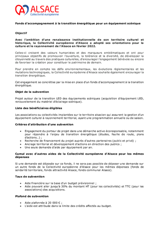 SUBVENTIONS AU TITRE DU SOUTIEN AUX OPÉRATEURS CULTURELS D'ECHELLE ALSACIENNE