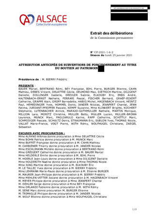 La CeA mène une politique de préservation, restauration, valorisation et mise en tourisme du patrimoine, porteur de l'identité alsacienne et de l'attractivité du territoire, au service de la marque Alsace. Le présent rapport a pour objet de proposer à la Commission permanente de décider d'attribuer des subventions d'investissement d'un montant total prévisionnel de 291 177 € et d'approuver les termes des projets de conventions financières correspondantes.