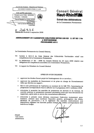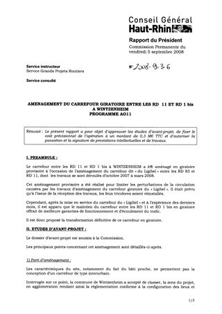 AMENAGEMENT DU CARREFOUR GIRATOIRE ENTRE LES RD 11 ET RD 1 bis A WINTZENHEIM PROGRAMME AO11