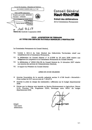 CO33 - ACQUISITION DE TERRAINS AU TITRE DES ESPACES NATURELS SENSIBLES A WESTHALTEN