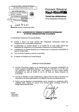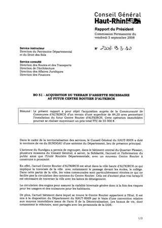 BO 51 - ACQUISITION DU TERRAIN D’ASSIETTE NECESSAIRE AU FUTUR CENTRE ROUTIER D’ALTKIRCH