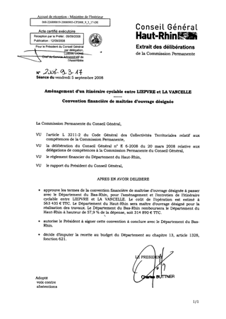 RD 41 - COURTAVON-PFETTERHOUSE ------ ROUTE FRANCO-SUISSE ------ TRAVAUX D'INVESTISSEMENT ET DE FONCTIONNEMENT ----- CONVENTION DE COOPERATION TRANSFRONTALIERE