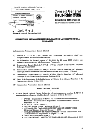 SUBVENTIONS AUX ASSOCIATIONS RELEVANT DE LA DIRECTION DE LA SOLIDARITE