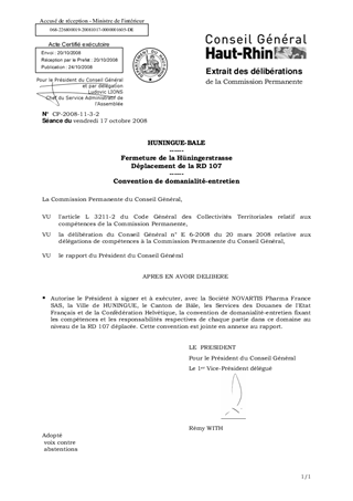 Le 2 mai 2007, un accord cadre était signé entre le Préfet du Haut-Rhin, NOVARTIS, les Villes de SAINT-LOUIS et HUNINGUE, la Communauté de Communes des Trois Frontières, le Canton de Bâle Ville et le Département. Pour des raisons mineures, un avenant doit préciser cet accord.