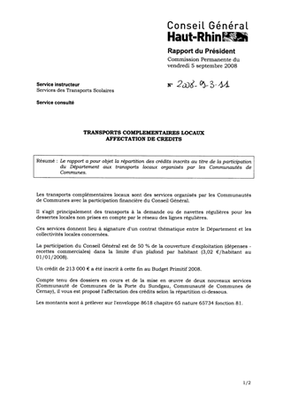 Le rapport a pour objet la répartition des crédits inscrits au titre de la participation du Département aux transports locaux organisés par les Communautés de Communes.