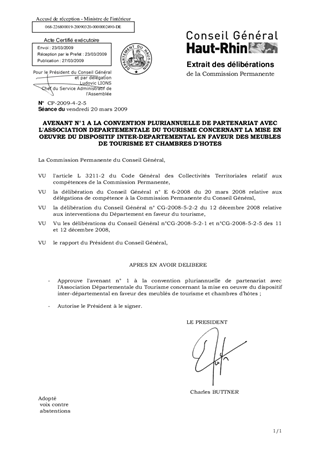 Il est proposé d'approuver l'avenant n° 1 à la convention pluriannuelle de partenariat avec l'Association Départementale du Tourisme concernant la mise en oeuvre du dispositif inter-départemental en faveur des meublés de tourisme et chambres d'hôtes et d'autoriser le Président à le signer.