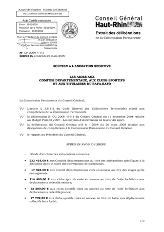 : Il vous est proposé d'allouer une série d'aides aux Comités départementaux et clubs sportifs, de verser les subventions aux Comités sous convention de partenariat ainsi que d'entériner le renouvellement de sept de ces conventions et d'attribuer l'aide départementale aux titulaires du BAFA-BAFD. Le total de l'enveloppe à engager dans ce rapport s'élève à 400 512 €.