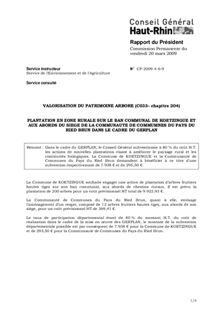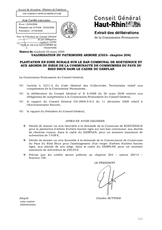 VALORISATION DU PATRIMOINE ARBORE (C033– chapitre 204) PLANTATION EN ZONE RURALE SUR LE BAN COMMUNAL DE KOETZINGUE ET AUX ABORDS DU SIEGE DE LA COMMUNAUTE DE COMMUMNES DU PAYS DU RIED BRUN DANS LE CADRE DU GERPLAN
