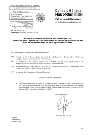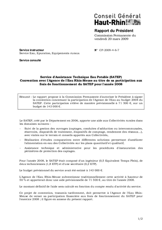 Service d'Assistance Technique Eau Potable (SATEP) Convention avec l'Agence de l'Eau Rhin-Meuse au titre de sa participation aux frais de fonctionnement du SATEP pour l'année 2008