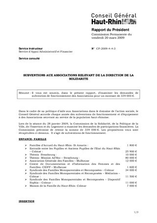 Il vous est soumis, dans le présent rapport, d’examiner les demandes de subvention de fonctionnement des Associations pour un montant de 339 000 €.