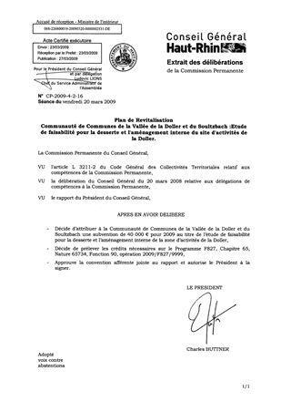 Il est proposé d'attribuer à la Communauté de Communes de la Vallée de la Doller et du Soultzbach, une aide de 40 000 € au titre d'une étude de faisabilité pour la desserte et l'aménagement interne du site d'activités de la Doller.