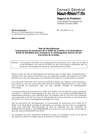Plan de RevitalisationCommunauté de Communes de la Vallée de la Doller et du Soultzbach :Etude de faisabilité pour la desserte et l'aménagement interne du site d'activités de la Doller.