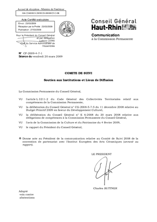Informations relatives au Comité de Suivi mis en place dans le cadre du partenariat conclu avec l'Institut Européen des Arts Céramiques (IEAC).