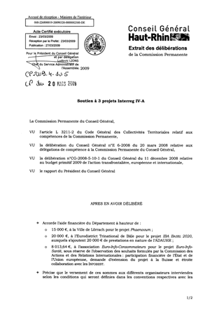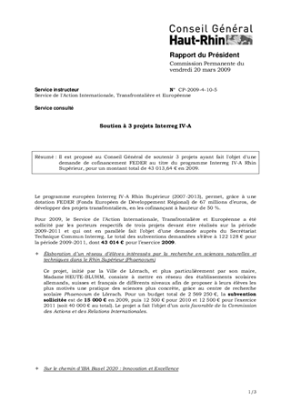 Il est proposé au Conseil Général de soutenir 3 projets ayant fait l'objet d'une demande de cofinancement FEDER au titre du programme Interreg IV-A Rhin Supérieur, pour un montant total de 43 013,64 € en 2009.