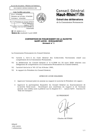 CONVENTION DE FINANCEMENT DE LA NAVETTE SAINT-LOUIS - EUROAIRPORT Avenant n° 1