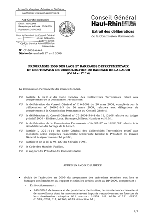 PROGRAMME 2009 DES LACS ET BARRAGES DEPARTEMENTAUX ET DES TRAVAUX DE CONSOLIDATION DU BARRAGE DE LA LAUCH (C614 et C114)