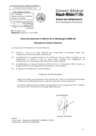 Union des Industries et Métiers de la Métallurgie (UIMM 68) Demande de soutien financier