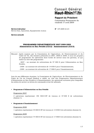 PROGRAMMES DEPARTEMENTAUX 2007-2008-2009Alimentation en Eau Potable (C012) - Assainissement (C013)
