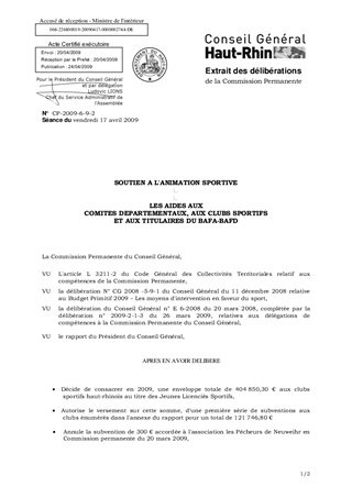Conformément aux critères d'intervention en matière d'actions sportives, il vous est proposé d'allouer la subvention Jeunes Licenciés Sportifs pour 2009 ainsi qu'un second versement de l'aide départementale aux titulaires du BAFA-BAFD. L'engagement financier de ce rapport s'élève à 126 446,80 €.