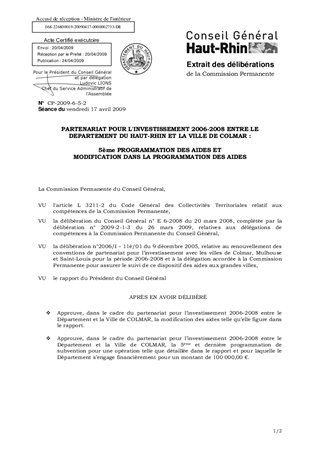 PARTENARIAT POUR L'INVESTISSEMENT 2006-2008 ENTRE LE DEPARTEMENT DU HAUT-RHIN ET LA VILLE DE COLMAR : 5ème PROGRAMMATION DES AIDES ET MODIFICATION DANS LA PROGRAMMATION DES AIDES