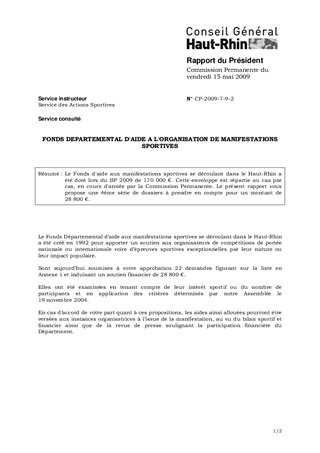 FONDS DEPARTEMENTAL D'AIDE A L'ORGANISATION DE MANIFESTATIONS SPORTIVES