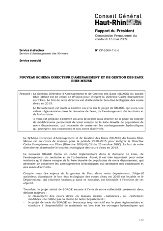 NOUVEAU SCHEMA DIRECTEUR D'AMENAGEMENT ET DE GESTION DES EAUX RHIN MEUSE