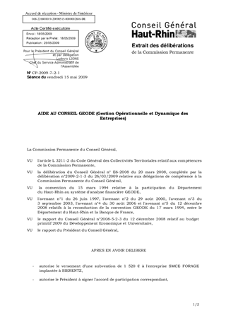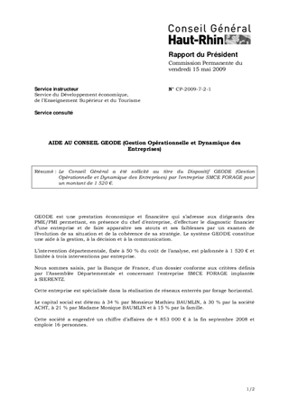 Le Conseil Général a été sollicité au titre du Dispositif GEODE (Gestion Opérationnelle et Dynamique des Entreprises) par l'entreprise SMCE FORAGE pour un montant de 1 520 €.