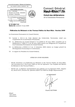 Fédération du Bâtiment et des Travaux Publics du Haut-Rhin : Soutien 2009