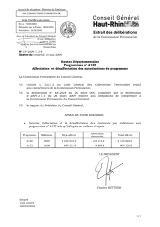 Routes Départementales Programmes n° A132 Affectation et désaffectation des autorisations de programme