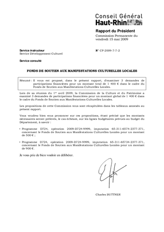Il vous est proposé, dans le présent rapport, d'examiner 3 demandes de participations financières pour un montant total de 1 400 € dans le cadre du Fonds de Soutien aux Manifestations Culturelles Locales.