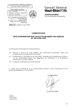 COMMUNICATION NOTE D’INFORMATION SUR L’ETAT D’AVANCEMENT DES GERPLAN AU 1ER AVRIL 2009